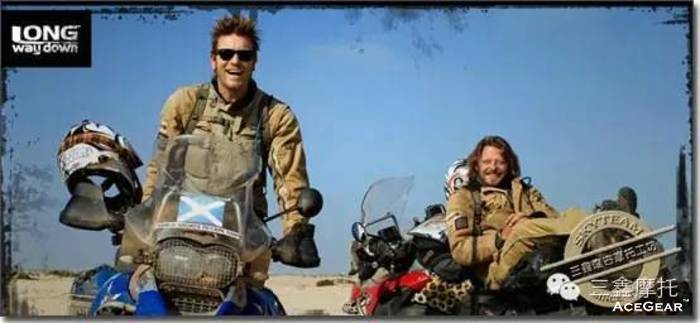 好了,让我们把思绪还是拉回英国,既然是一个有着如此丰富摩托文化的国度,那一定不乏喜爱它的人了。国家地理曾拍摄了一部纪录片《LONG WAY DOWN长路迢迢》,讲述了两英国摩托爱好者从苏格兰到非洲的摩旅历程。著名影星Ewan McGregor(<<红磨坊>>男主角)和好友Charley Boorman于2007年5月12日出发,他们驾驶着BMW R1200GS摩托,从英国的最北端,苏格兰的John O’Groats出发,历时3个月,超过24140千米,穿越18个国家,于2007年8月5日到达南非开普敦,非洲大陆的最南端Milnerton。
