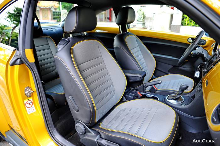 我很喜歡這輛Beetle Dune特仕車,雖然沒有過於突出的動力與操控性能,但是沙金色的內外配色,使其成為一輛特別搶眼的金龜,尤其是再搭配上大型尾翼,則更顯其動感特質。我想,這款車最大的賣點就是對於視覺上的刺激,因此沙金色雖然在國內用車習慣與環境中,算是比較大膽的配色,不過相較之下,白色與灰色的塗裝,對於Beetle Dune這樣的車款來說,就稍嫌普通了些。