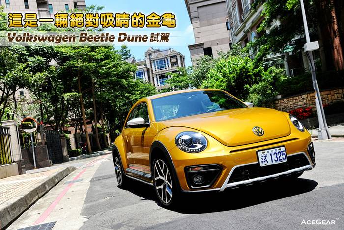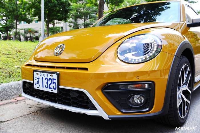 承襲60、70年代Beetle Rally Car與Dune Buggy越野元素的Beetle Dune,雖非限量車型,但是國外所提供的數量也非常有限,台灣福斯僅爭取到88輛的配額,據說在極受好評的情況下,目前銷售已逾60輛,而且白、灰與沙金三種車色中,沙金色訂單將近40輛,可說是相當成功的一款特仕車。為表達出荒漠越野精神,沙金這種車色不但亮眼,而且還頗符合這樣的主題,在外觀套件方面,則增加了前/後運動化保險桿、前氣壩、後下擾流、側裙、側下護板、大型尾翼與運動化Cross霧黑色輪弧,輪圈部分也特別搭配上專屬的18吋款式。上個月在記者會看到這款身披沙金色外衣的Beetle Dune之後,就一直覺得這個顏色非常好看,而在這次試駕過程中,在陽光的照耀下,就更顯閃耀亮眼。