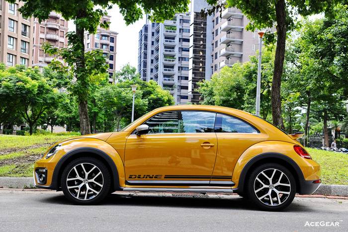 Beetel之所以受到消費者的喜愛,除了可愛逗趣的造型,與豐富的車色變化之外,穩定的駕駛特性與耐用度,成為家庭用車非常理想的選擇。長期以來,以家庭用車為取向的Volkswagen,總覺得在量產車的外觀變化與配色上,稍嫌保守了些,不過總代理在上個月引進的這款Beetle Dune,耀眼的沙金色外表,搭配上運動氣息濃厚的外觀套件,確實聚集了眾多的目光。