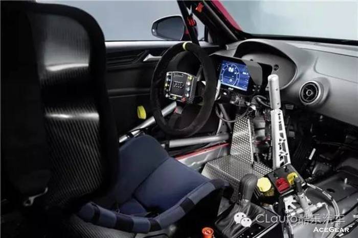 虽然RS3 LMS是基于市售版RS3改造而来,但其竞技程度早已发生了翻天覆地的变化。RS3 LMS赛车的车身离地高度更低,以换来更低的重心以及良好的空气动力学性能,此外,夸张的宽体设计以及各种冷却散热通风道让时刻处于高转速高压力紧张状态下的赛车能够得到有效的降温,而赛车内部所有和舒适有关系的内饰全部都被拔光,取而代之的是全碳纤维的赛车桶椅、防滚架等配备,车顶也预留了FIA规定的逃生出口,配合FIA认证的防爆油箱,确保车手的生命安全。