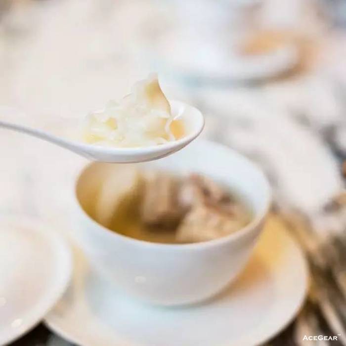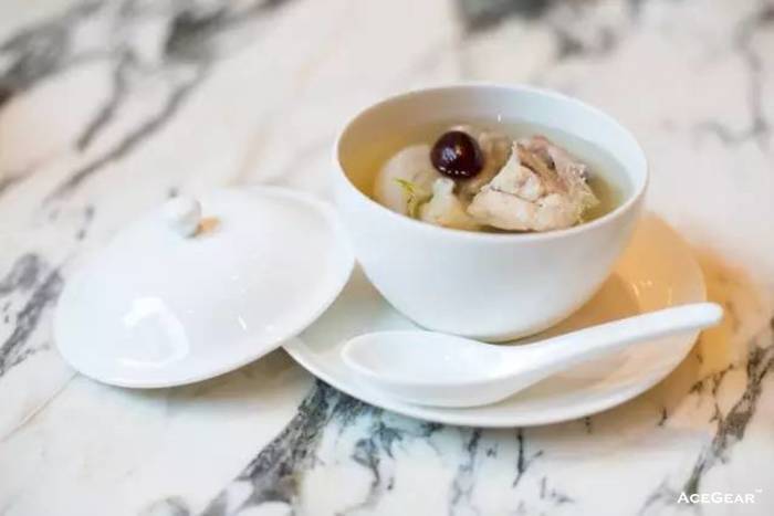 你喝过完全没有肥油的鲜鸡汤吗?这盅就是。别看它清澈透明的,这是货真价实的鸡汤,但是味道很特别——很清爽,没有一般鸡汤的厚重。茶花鸡产自云南,鸡很瘦、没有肥油,才能炖出这么清澈的鸡汤。