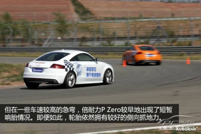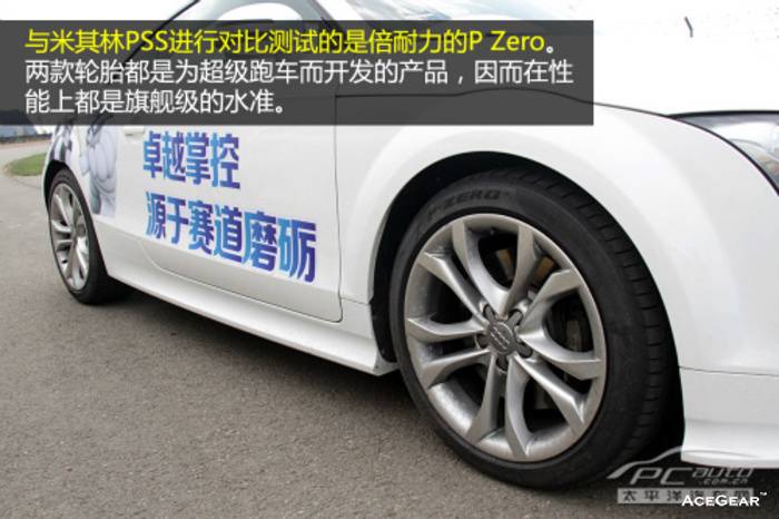我首先测试的是安装有倍耐力P Zero的奥迪TTS。倍耐力P Zero是为超高性能车型而开发的轮胎产品,有非常的不错的抓地性能。