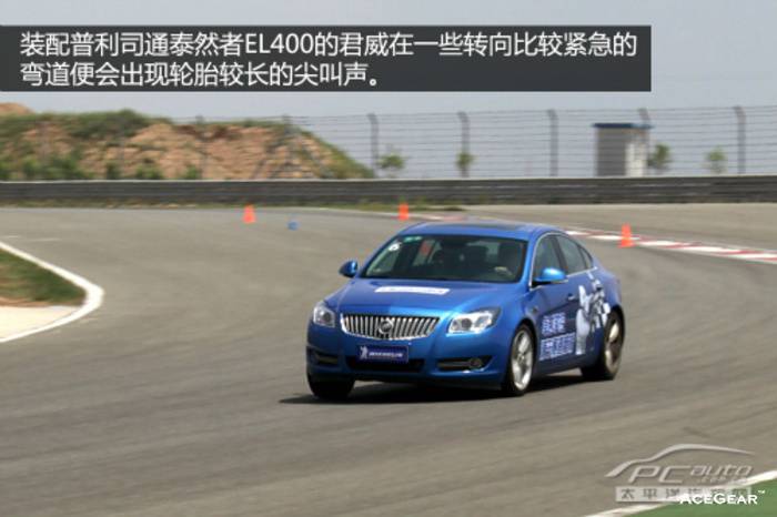 装配普利司通泰然者EL400的君威在一些转向比较紧急的弯道便会出现轮胎较长的尖叫声。