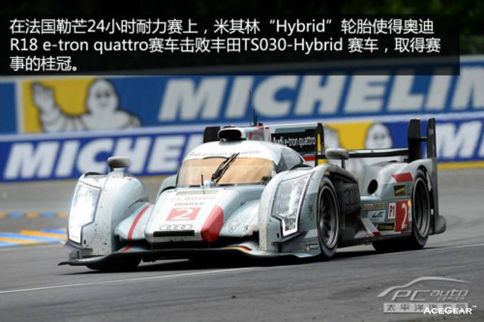 在法国勒芒24小时耐力赛上,米其林“Hybrid”轮胎使得奥迪R18 e-tron quattro赛车击败丰田TS030-Hybrid 赛车,取得赛事的桂冠。