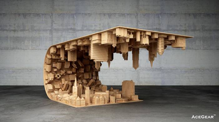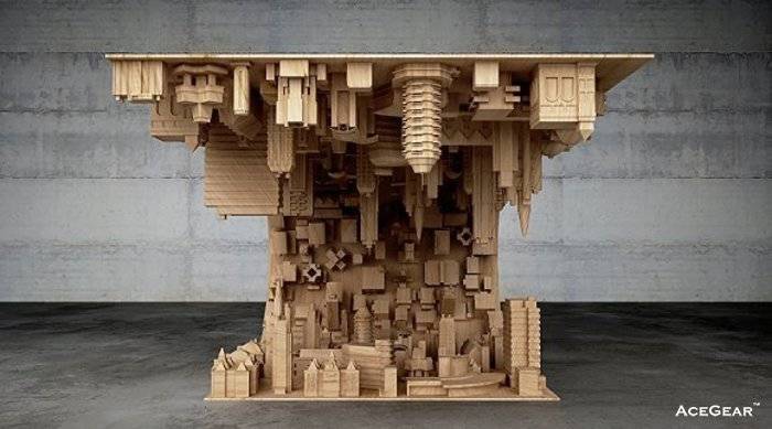 Stelios Mousarris这个波型城市咖啡桌的灵感来自克里斯托弗·诺兰那部深奥的《盗梦空间》,令人惊叹的城市景观就这么向上翻折。这个咖啡桌由木材和钢铁共同制成,显然3D打印技术用于制作摩天大楼的模型。
