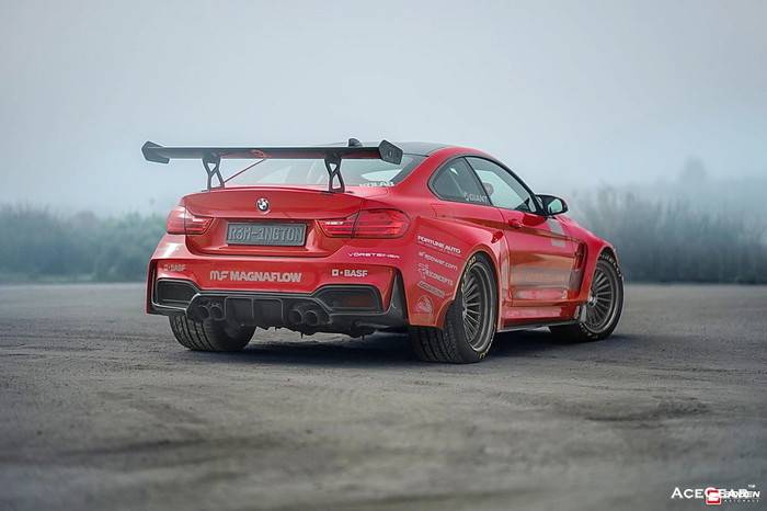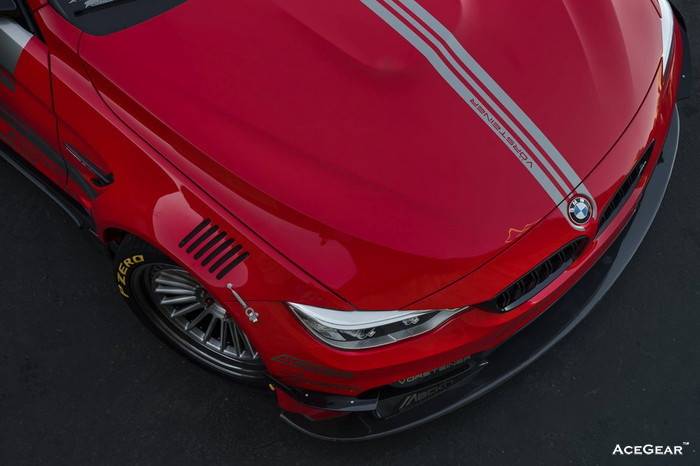 Vorsteiner为进一步延伸的BMW F82 M4高性能本色,前年底推出前后车宽分别加宽10cm、18cm,同时用CFRP碳纤材质的GTRS4 Widebody Kits!即使爆龟宽体并不稀奇,不过极为突出的四个爆龟轮拱,无论造型、轮廓却能完全融入M4原厂线条之中,搭配Vorsteiner深唇的20寸加大轮圈,明显散发慑人杀气之余,同时又洋溢浓厚设计美感,即使整套大包售价高达2万美元左右,却依旧吸引F82 M4车主青睞!