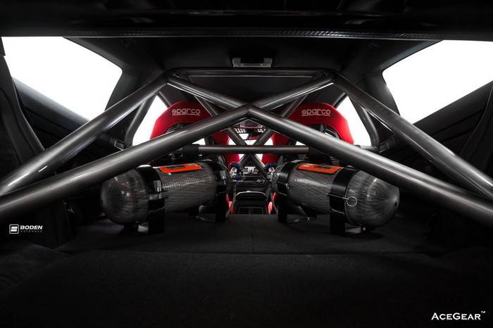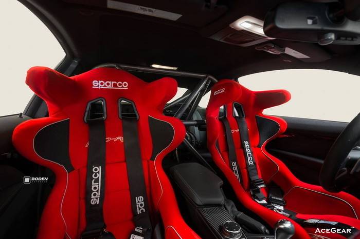 此次由美国Boden Autohaus所衍生的GTRS4-VX赛道变种版,与正规GTRS4相比,基于造就更优异空力的目的,最大特色除了车尾添加大型GT尾翼,前保险杠两侧各加装一支碳纤定风翼,前叶子板也别出心裁增添散热孔设计,搭配Vorsteiner新推出、放射细爪状的V-FF 102轻量锻造轮圈,整体竞技杀气也明显浓厚!既名为竞技式样,车内也添加防滚架、桶型赛车椅的配置。